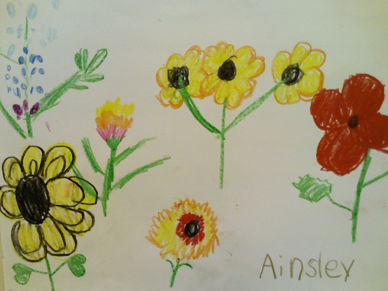 There are wild flowers all over the city this Spring and Ainsley created this crayon creation to celebrate them.